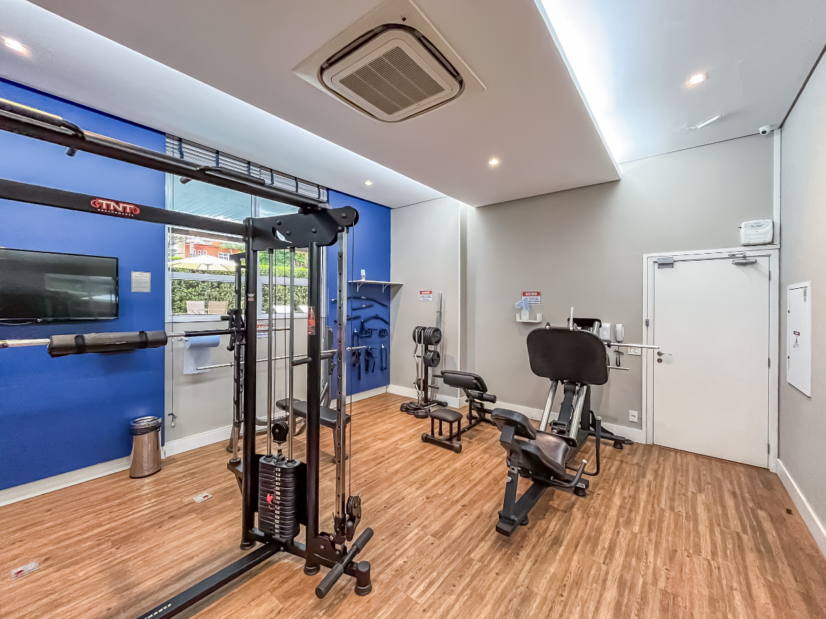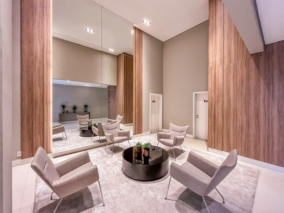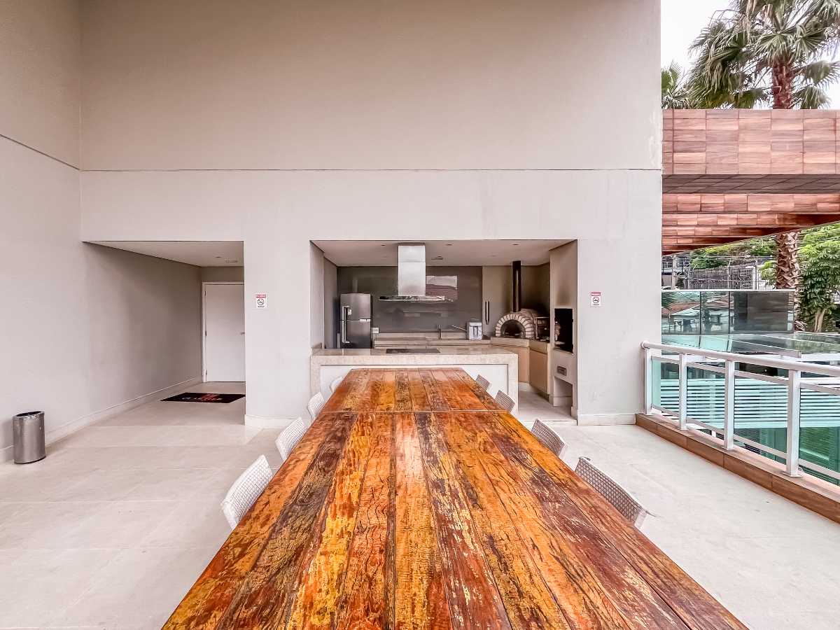 O condomínio, construído em 2017, é um empreendimento de alto padrão, com lazer completo e segurança 24 horas: academia, piscinas (inclusive aquecida), salão de festas, brinquedoteca, espaço fitness, churrasqueira, jardim e zeladoria dedicada.