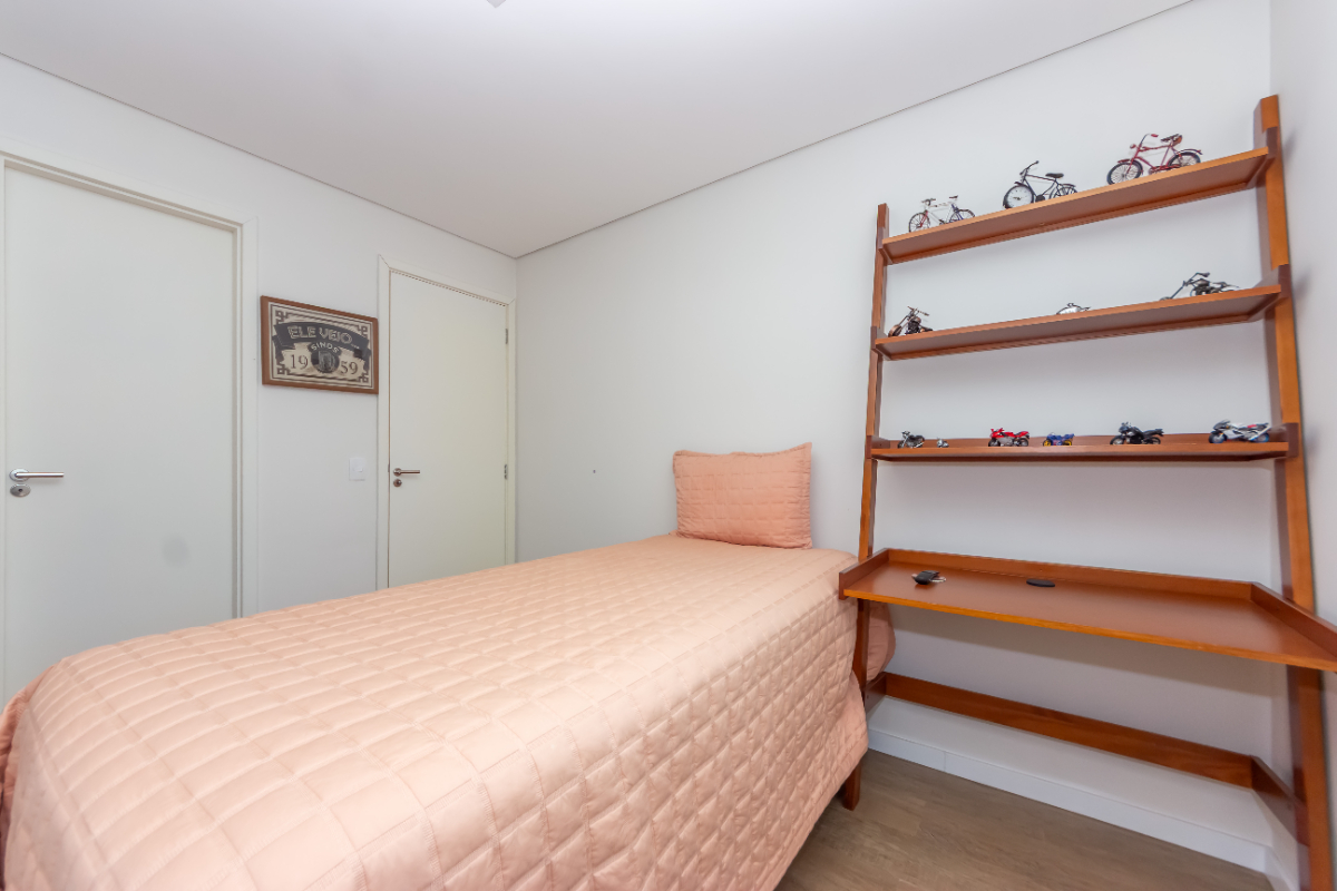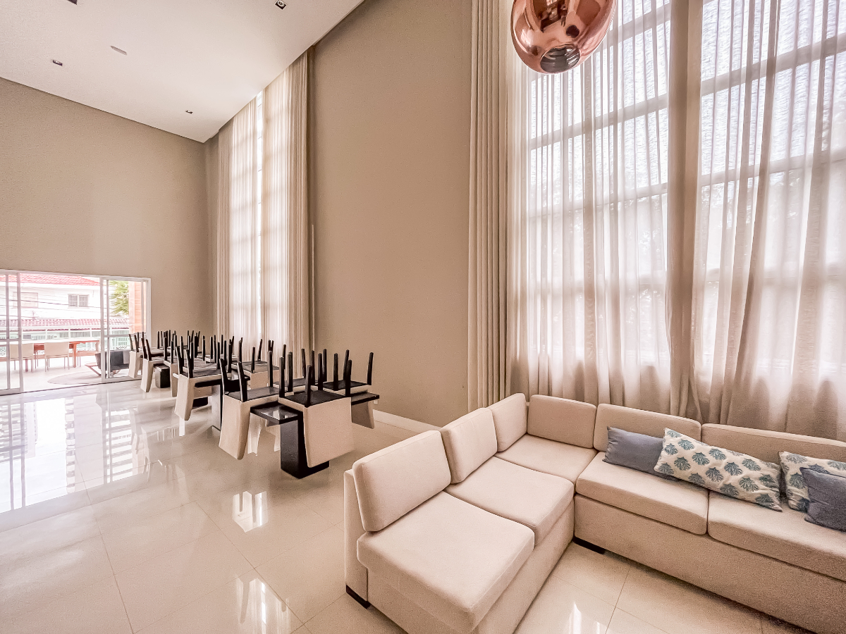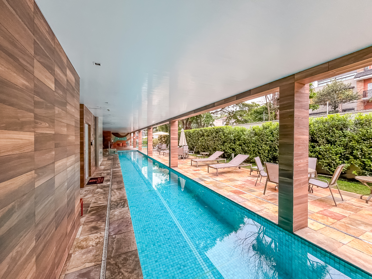 O condomínio, construído em 2017, é um empreendimento de alto padrão, com lazer completo e segurança 24 horas: academia, piscinas (inclusive aquecida), salão de festas, brinquedoteca, espaço fitness, churrasqueira, jardim e zeladoria dedicada.
