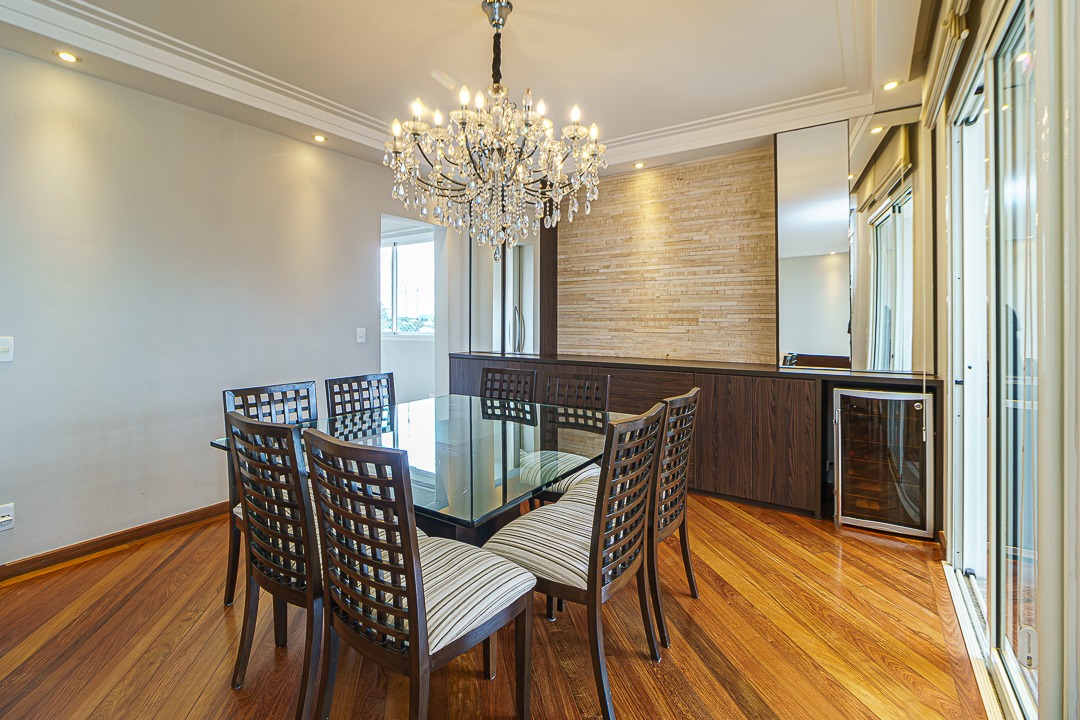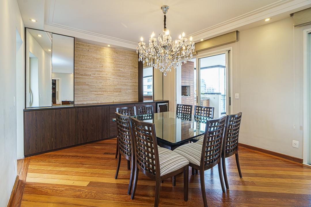 Conta com uma ampla sala para 3 ambientes, um sala para Home Theater, uma varanda bem grande, com churrasqueira e toda envidraçada.