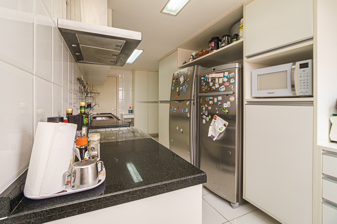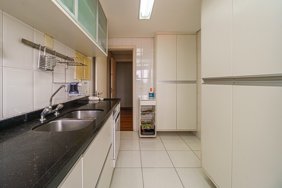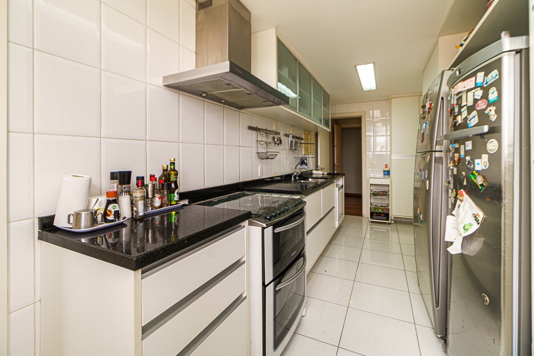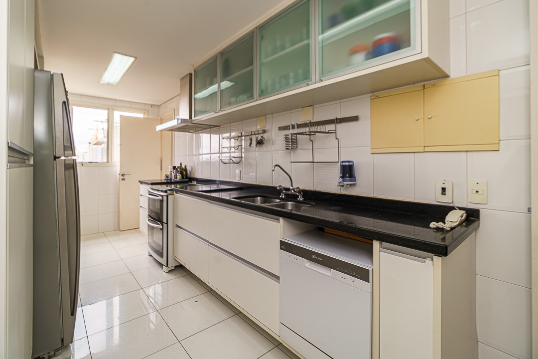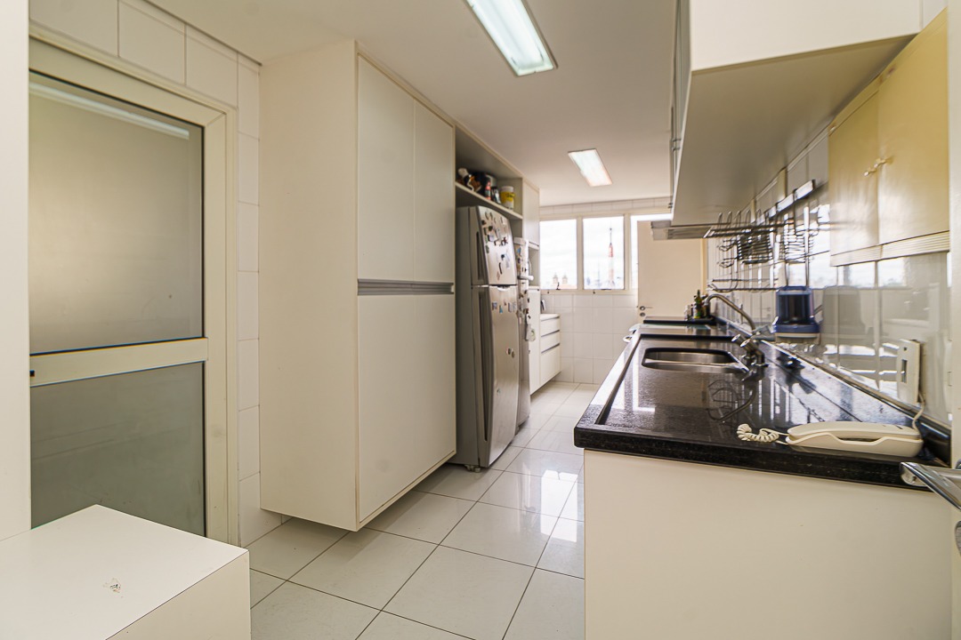 Cozinha bem iluminada, com bons armários, uma copa também com janela e vista, Area de serviço e terraço técnico para instalação de ar condicionado.