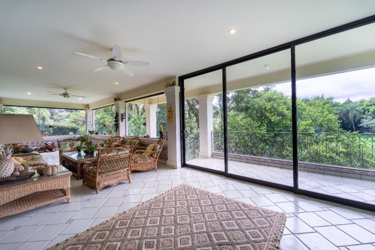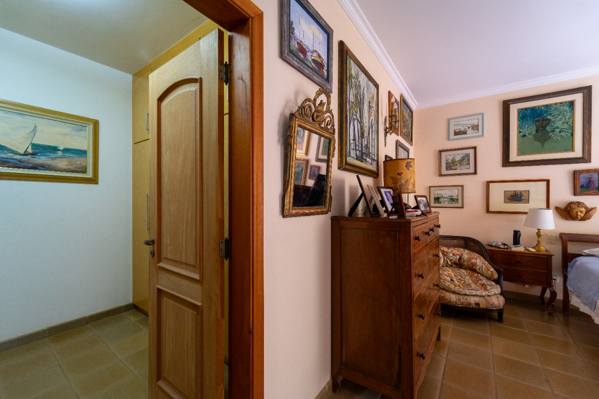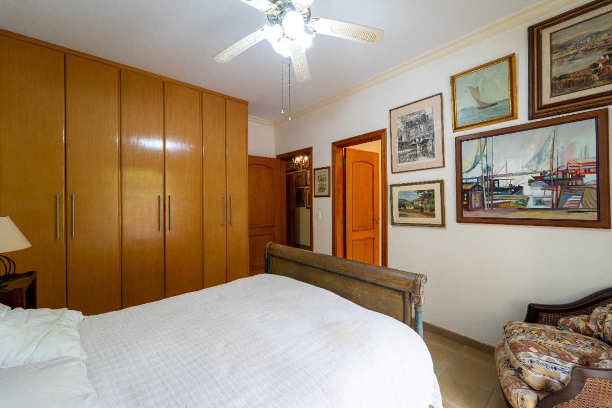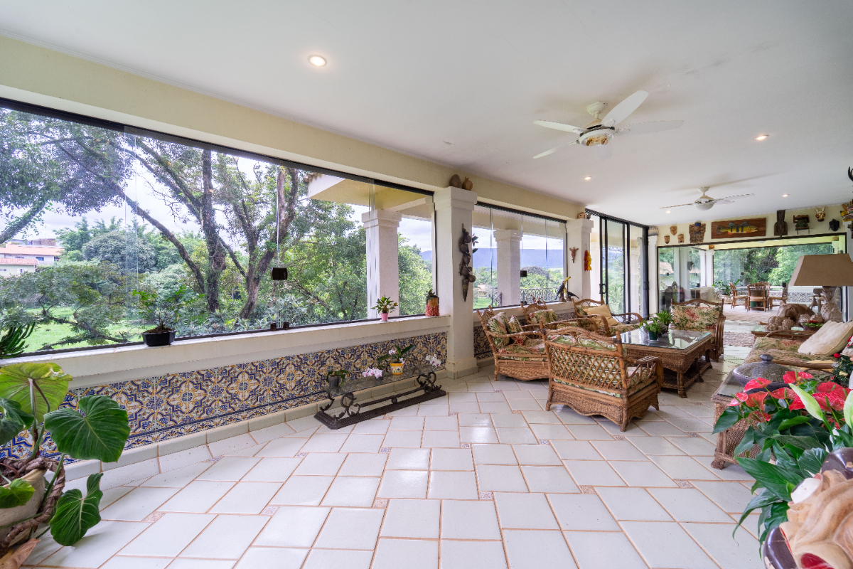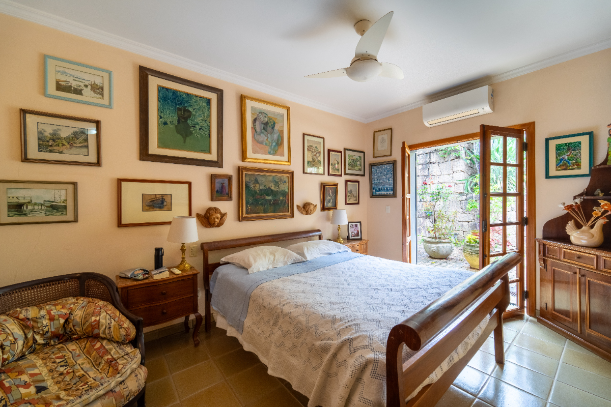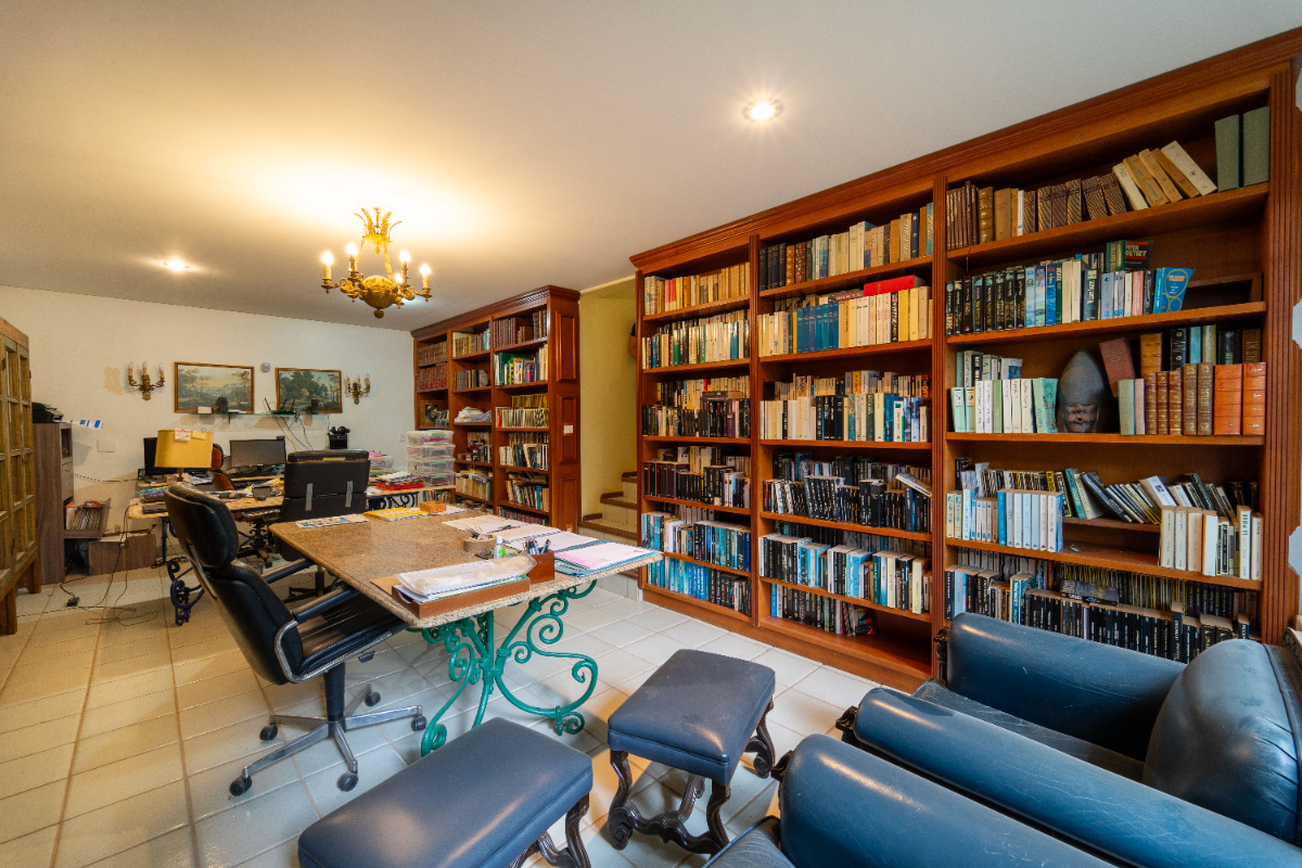 O destaque é o casarão principal, com cerca de 600 m² de área construída. Ele conta com sala principal avarandada e integrada em 5 ambientes, vista deslumbrante para a Serra do Japi, lareiras, sala de jantar, sala de TV, escritório, biblioteca, 3 suítes com portas-balcão para jardim de inverno em pedras, quarto de funcionária, cozinha ampla com armários planejados, despensa, lavanderia, banheiros sociais e garagem coberta para três veículos. O piso inferior ainda abriga 5 salas multifuncionais.